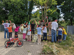 Viele fleißige Hände in bunten Gartenhandschuhen haben rund ums Brückenhaus eine Putzete gemacht. Was da so alles im Gebüsch lag! Vor allem die Zigarettenkippen beim Spielplatz fanden die Kinder ärgerlich. Einige Säcke Müll wurden eingesammelt. Danach gab es für alle leckere Pizza zur Stärkung.