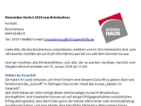 mit unserem Newsletter möchten wir Ihnen berichten, was seit Sommer im Brückenhaus los war. Und wir möchten Sie herzlich einladen…