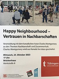 Am 25. Oktober um 17 Uhr spricht Charles Montogomery, ein kanadischer Autor und Experte für Stadtplanung, zum Thema "Vertrauen in Nachbarschaften".
